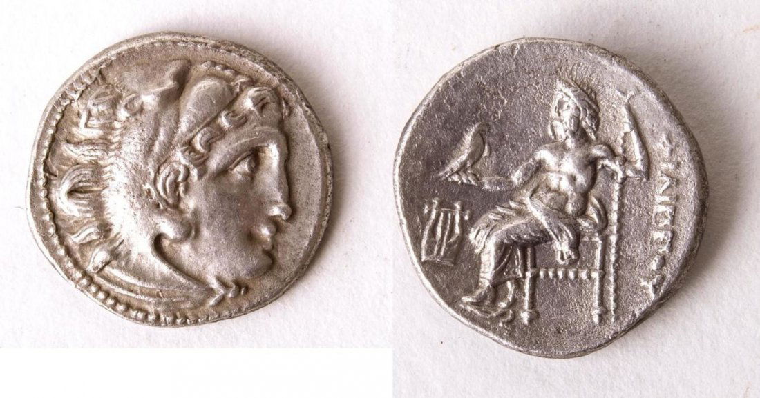 An ancient greek silver coin drachmae. Doublet of dram and diram.